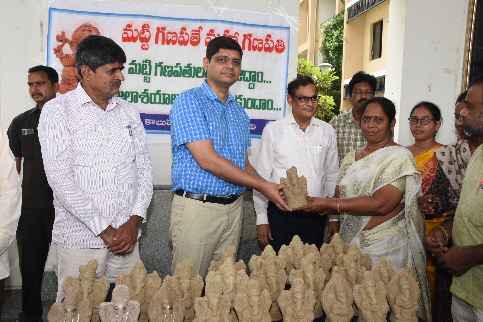 మట్టి గణపతులు పంపిణీ చేసిన కలెక్టర్