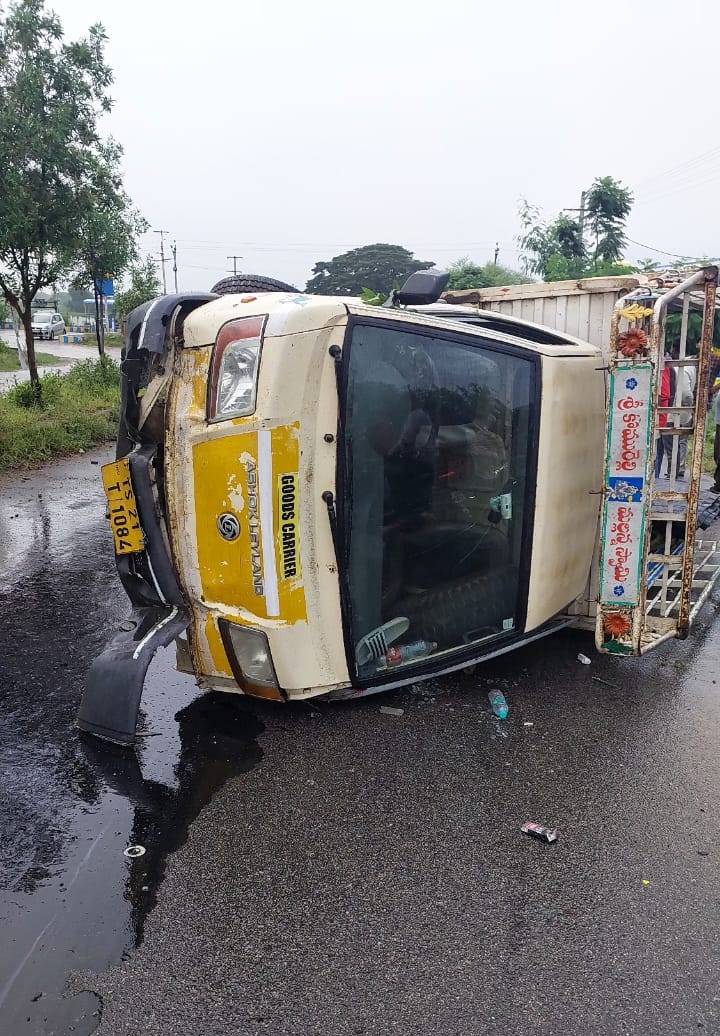 సిరిసిల్ల జిల్లా: అదుపుతప్పి వాహనం బోల్తా పడిన ఘటన ఎల్లారెడ్డిపేట మండలం రాచర్ల బొప్పాపూర్ లో జరిగింది. కామారెడ్డి వైపు నుంచి వస్తున్న లేలాండ్ వాహనం అదుపుతప్పి...