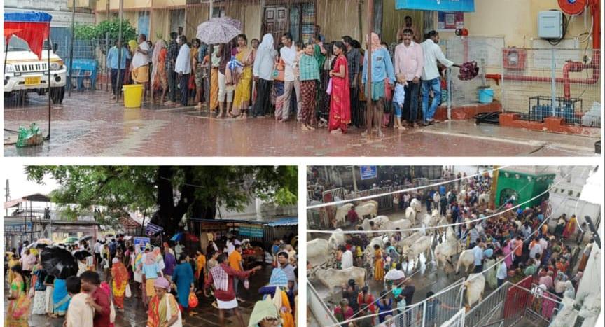 ప్రముఖ పుణ్యక్షేత్రం వేములవాడ శ్రీ రాజరాజేశ్వర స్వామి వారిని దర్శించుకోవడానికి శుక్రవారం రాష్ట్ర నలుమూల నుంచి భక్తులు భారీగా తరలివచ్చారు. అయితే ఈరోజు ఉదయం ఒక్కసారిగా వర్షం...