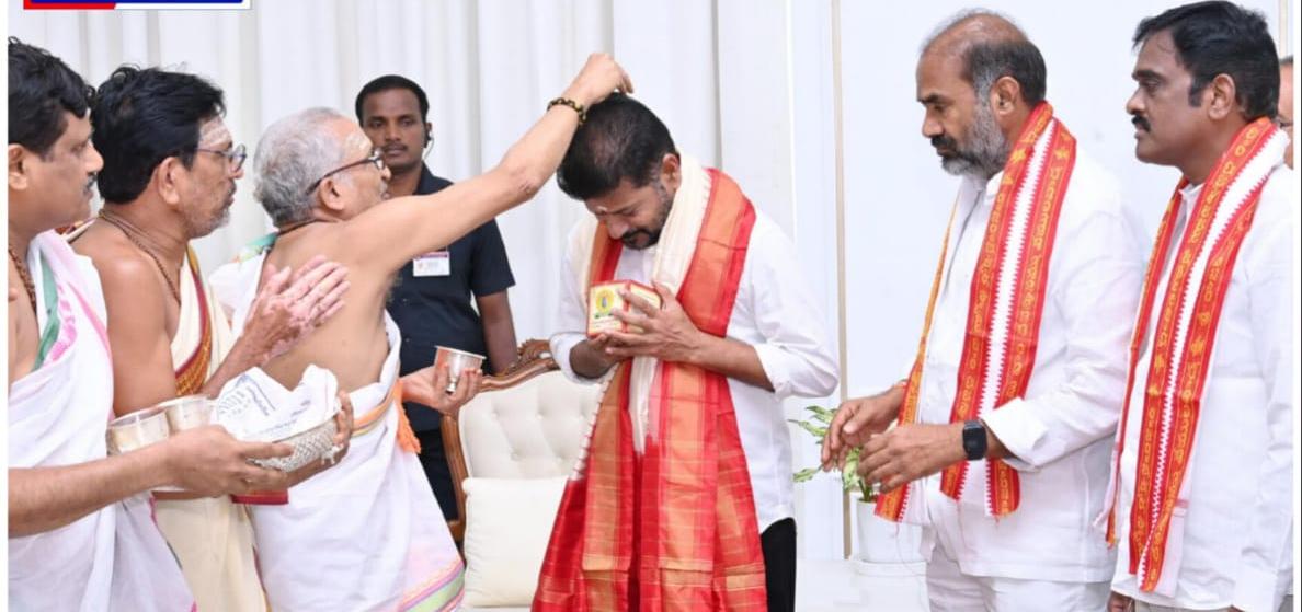 సీఎం రేవంత్ రెడ్డిని దీవించిన అర్చకులు